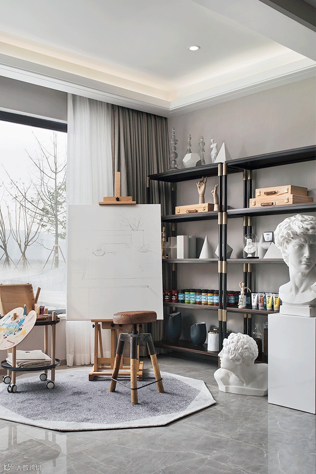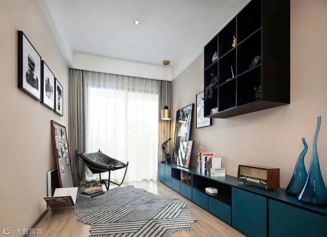 书房空间对装饰主义进行提纯,提取它鲜明的元素,将先锋艺术感融入到家居中。从家具的选择,色彩的搭配,以及陈设摆件的归置协调,每一个细节的铺排,彰显出微妙的富裕感之余,亦讲究一丝丝惬意的捕捉。