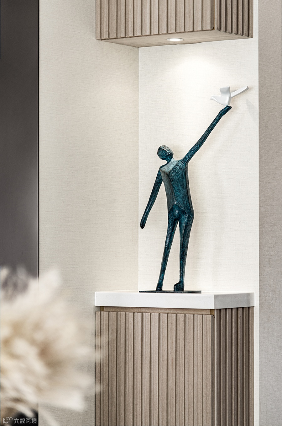 转角处的凹龛内,“海鸥与人”的雕塑置于龛内,为整体空间增加更多诗意和灵魂。