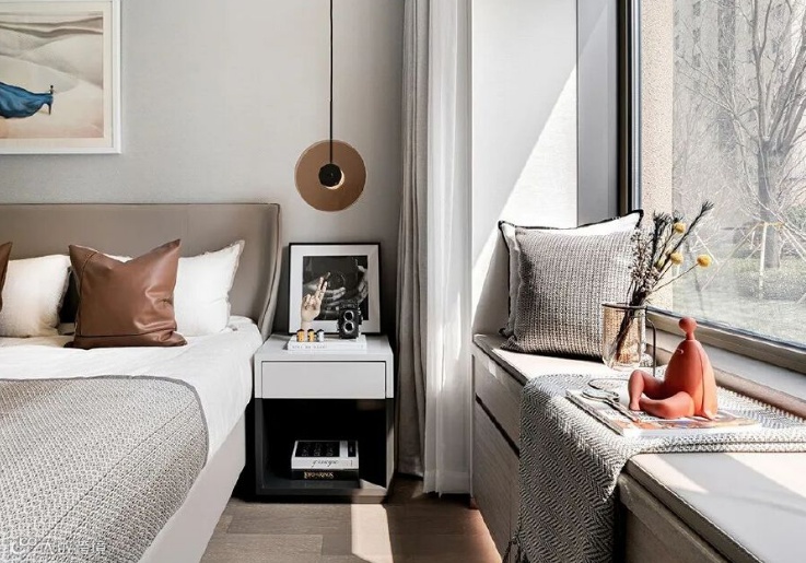 飘窗更是凸显了别样的休憩氛围。阳光、午后,喝上一杯咖啡,让生活温暖有光,让家是万丈光芒。