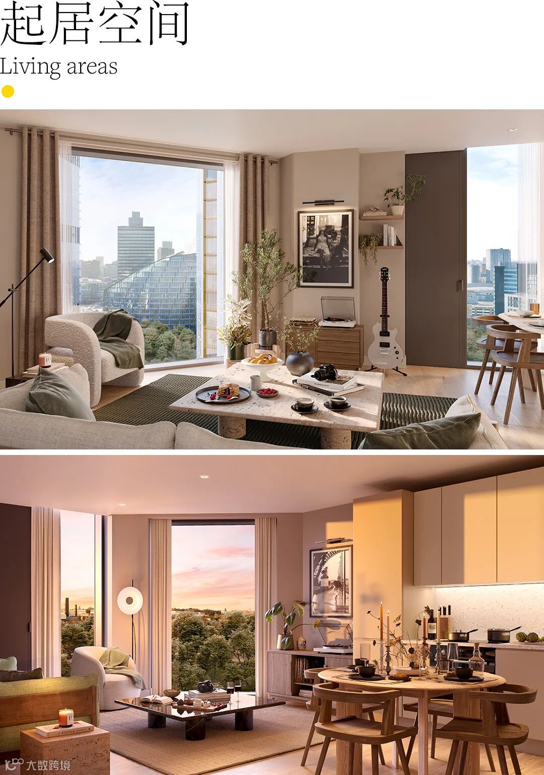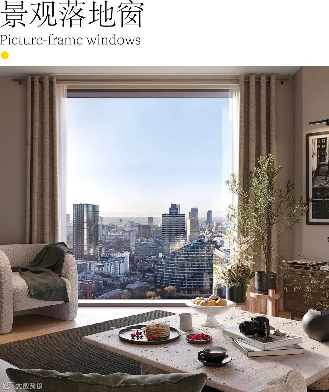 鉴于Crown View傲视整个曼城的绝对高度,以及它360度全方位俯瞰的极佳视野,设计方Hawkins\Brown特意为每间公寓都安排了「景观级」落地窗,无论面向市中心方向、还是抢先于项目完工在2024年落成的公园绿地,都能为每一户的室内日常带来如画般美好视野。