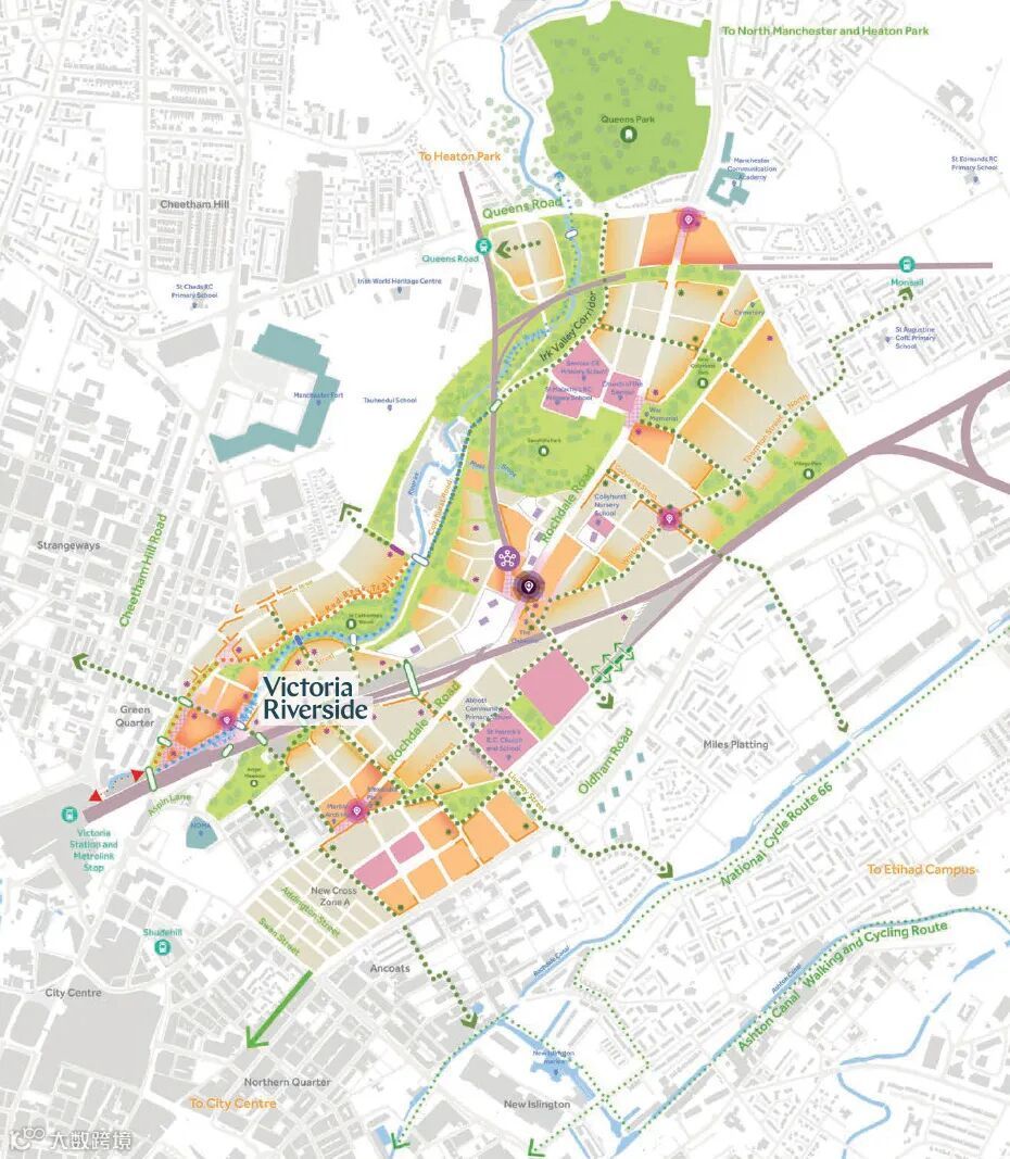 Victoria North由开发商FEC与曼彻斯特市政厅共同开发,位于曼彻斯特市中心以北,总投资已达10亿英镑,项目总价值GDV预估则已达40亿英镑,占地155公顷。
