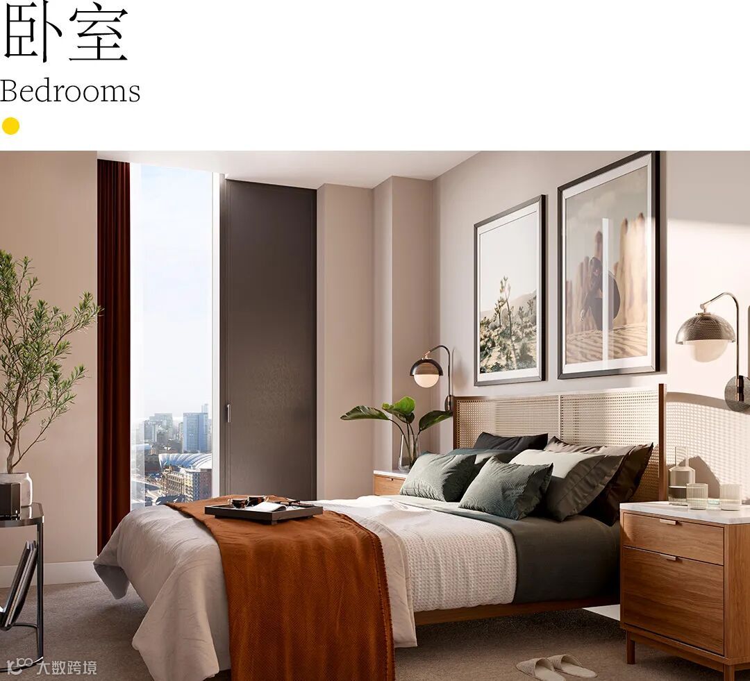 前面已经提到的景观落地窗,其实只是Crown View公寓的一处「小心思」。整体来看,楼内每一间公寓的布局和设计,都充分考虑到了起居空间和光线条件的「空气感」,加上中心暖心的色调搭配、至臻至善的品质把关,充分调动住户五感,从视觉、听觉、触觉等角度全面提供家的温馨与归属感。