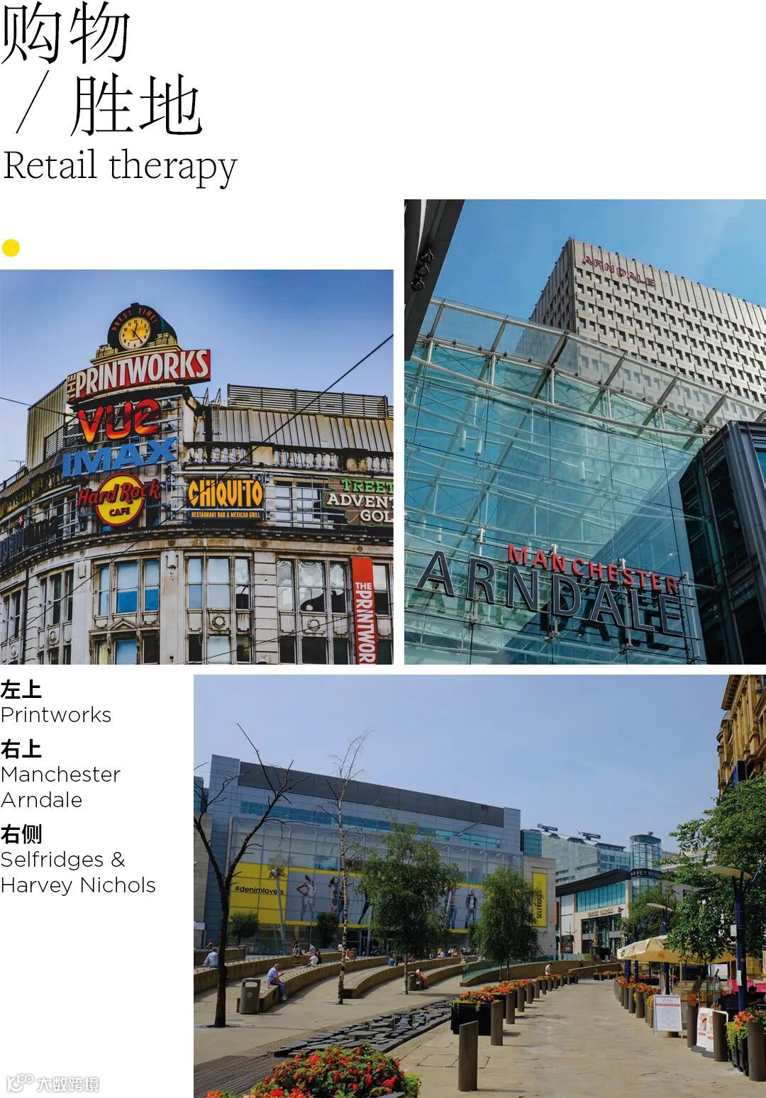 项目步行几分钟距离之外,就是全英最大购物中心之一Arndale Centre,有着包括苹果、Burberry在内的240多家商铺入驻;稍远一些的Northern Quarter以其复古商店、独立酒吧闻名;而在The Royal Exchange,您则可以找到Selfridges、Harvey Nichols等在内的英国奢侈百货,满足您一切购物需求。