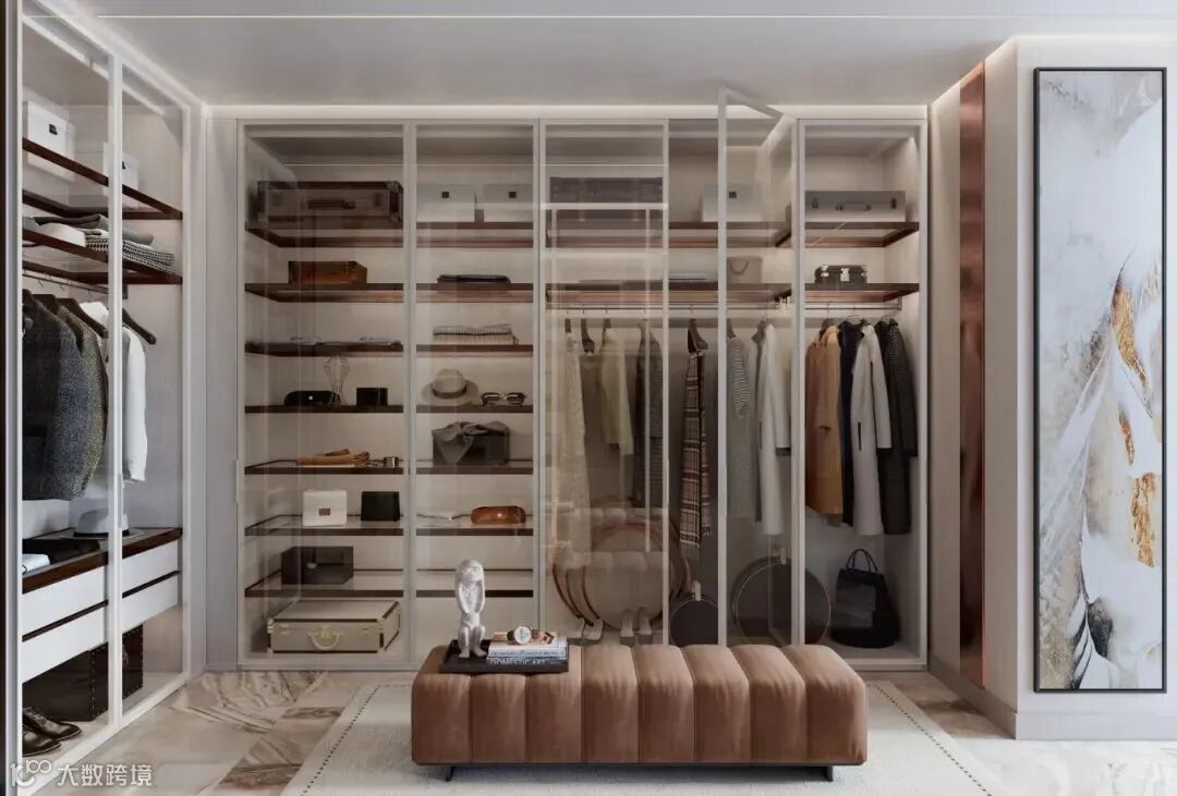 衣帽空间不多矫饰,以现代主义的高度理性,减少陈设的构成元素,于现代极简主义中流露出写意之美,简雅而素淡。