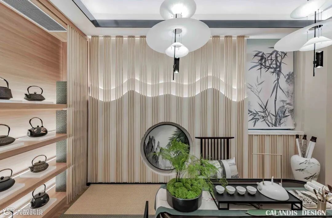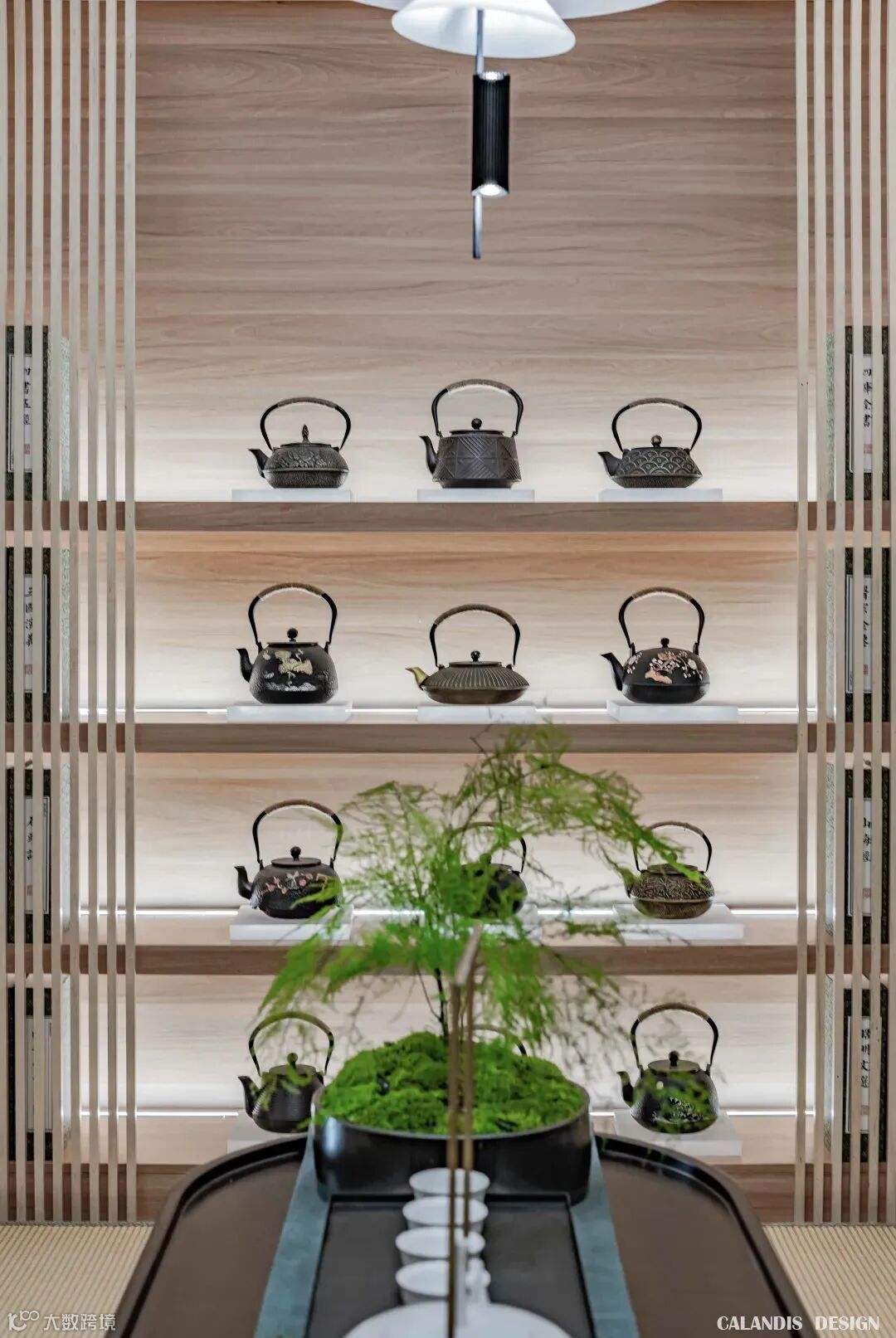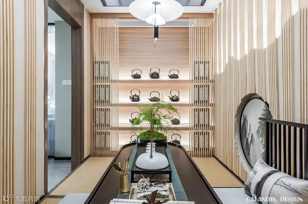 茶室采用榻榻米的设计形式,不仅能感受到茶道精神的表达,更能一边品茶一边赏玩屋主的藏品。