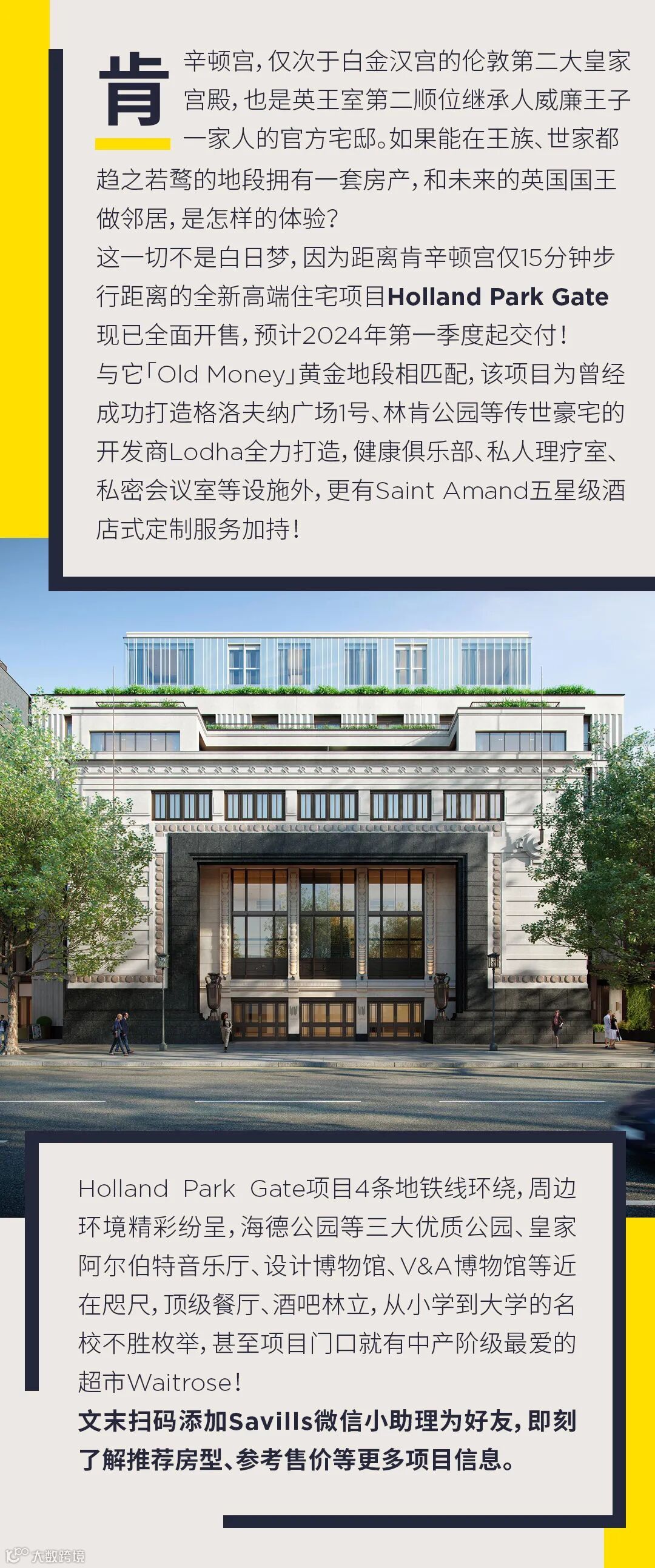 Holland Park Gate住宅项目预计2024年第一季度起交付,伦敦肯辛顿全面顶配居所+五星级酒店式定制服务,一至四居公寓参考售价215万英镑起!