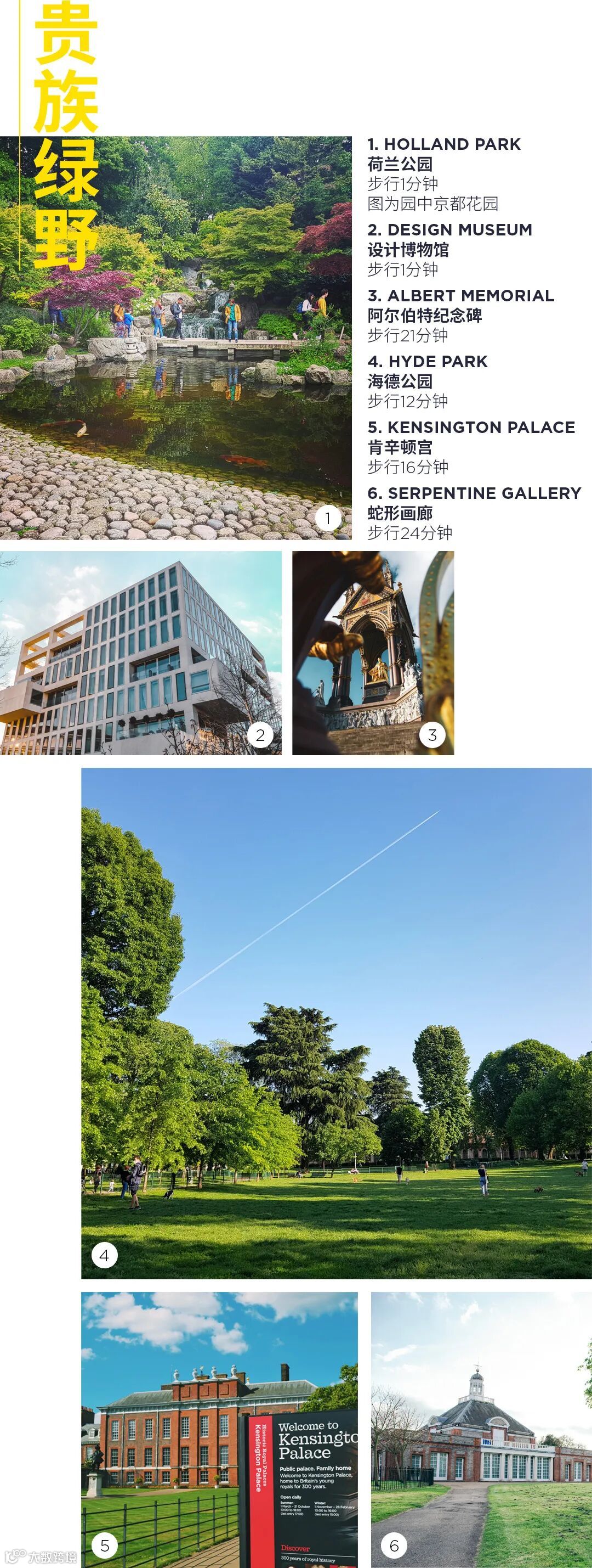 如项目名字所言,街对面就是大名鼎鼎的荷兰公园Holland Park,信步闲庭就可以到公园里优美无比的京都花园Kyoto Gardens小憩,或者到公园门口的设计博物馆Design Museum看一场有趣的展览。