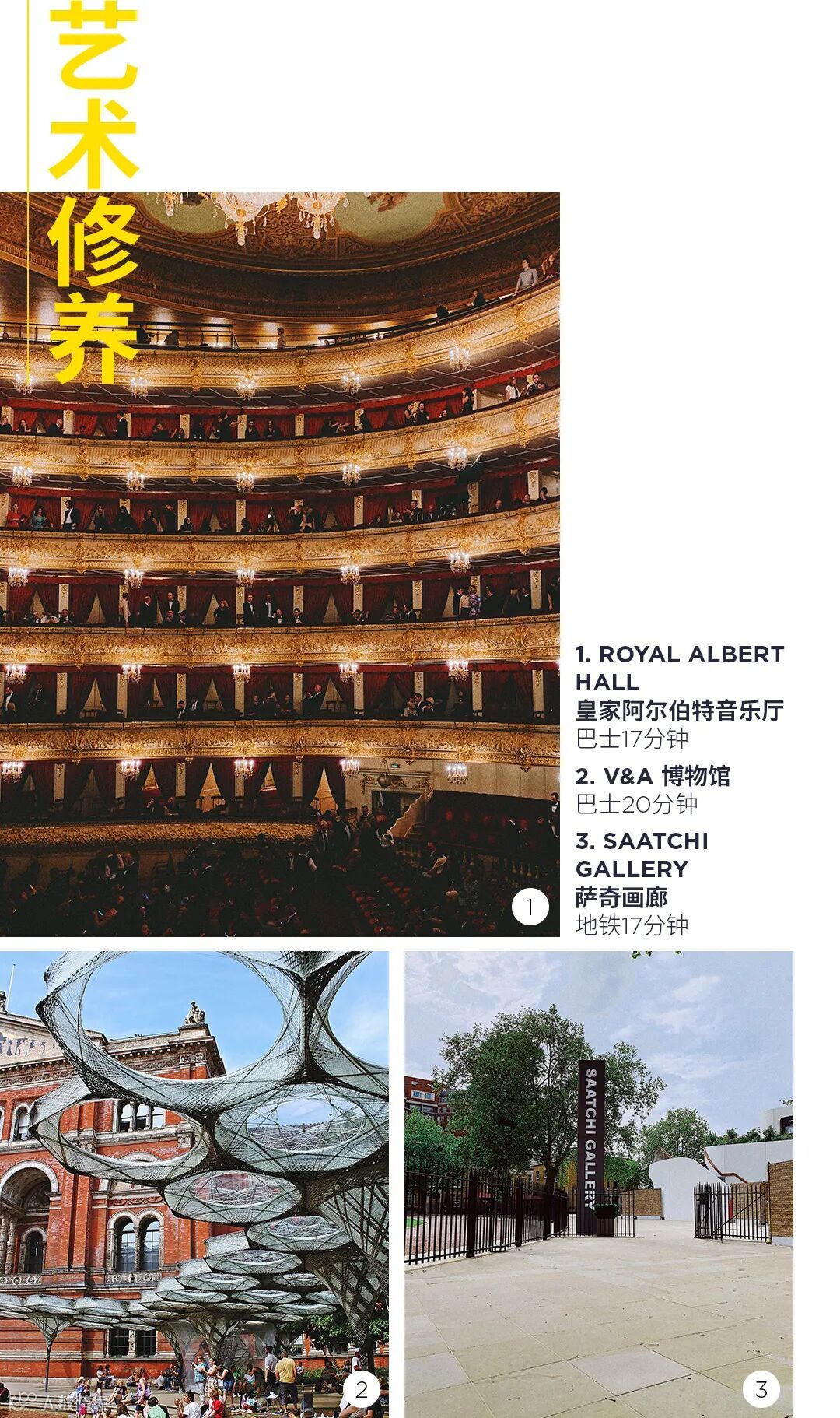 从骑士桥Knighsbridge的哈罗德百货、各大奢侈品旗舰店,到V&A博物馆、萨奇画廊;从奥利弗奖、英国电影学院奖、英国时尚大奖等盛典的默认举办地皇家阿尔伯特音乐厅,到近在咫尺的帝国理工学院、皇家艺术学院校区……