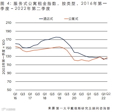 酒店式单位及住宅式单位的租金分别上升0.4%及4.4%。每月租金介乎20,000港元至30,000港元的单位之供应尤其紧张,而优质服务式住宅则维持具竞争力的租金以提高入住率。