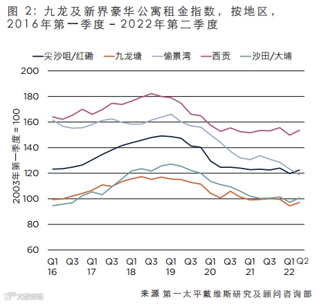 第一太平戴维斯最新发表的2022年第二季香港住宅租赁市场报告指出,由于新建单位及高端装修受到市场青睐,位于传统核心位置以及拥有开扬城市景观或海景的物业亦具吸引力,内地租客需求的重要性在第二季度更加显著。