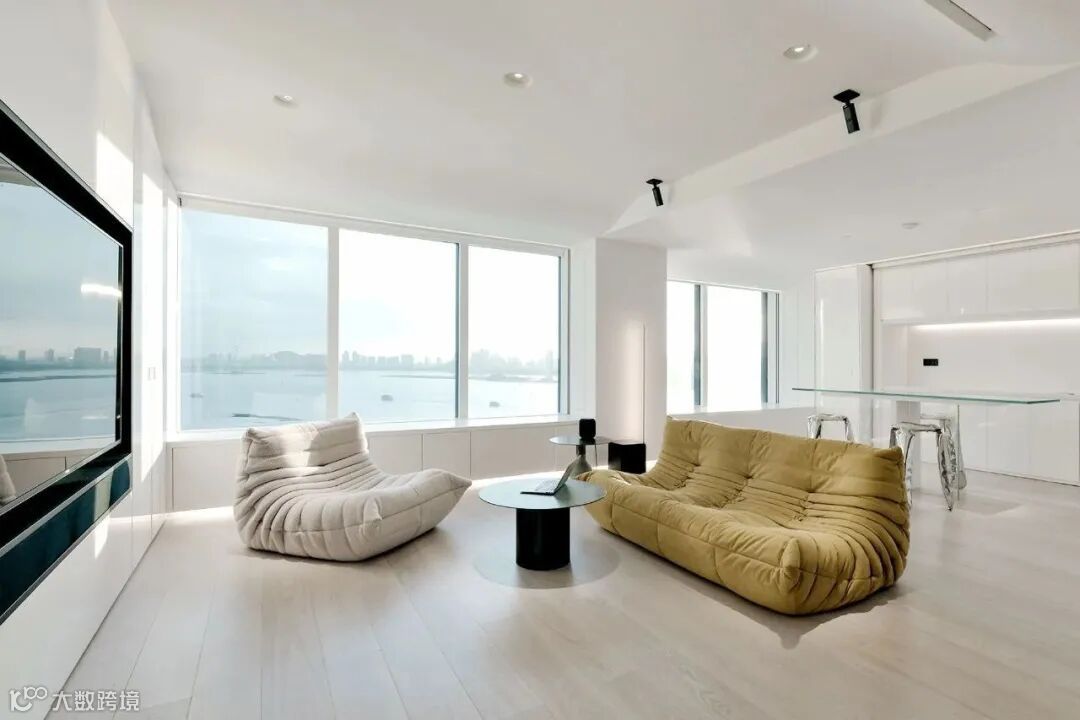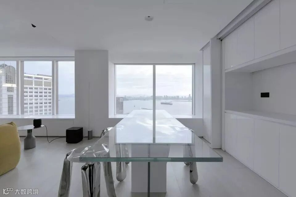他的家毗邻邮轮港,200㎡一个人住,从窗外看出去就是绝佳的一线海景。