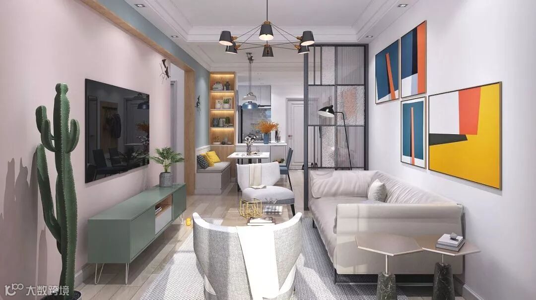 “糖系”风格的墙面、地板、基础家具都可以很平常,但只要加上合适的色彩点缀就可以瞬间逆袭。