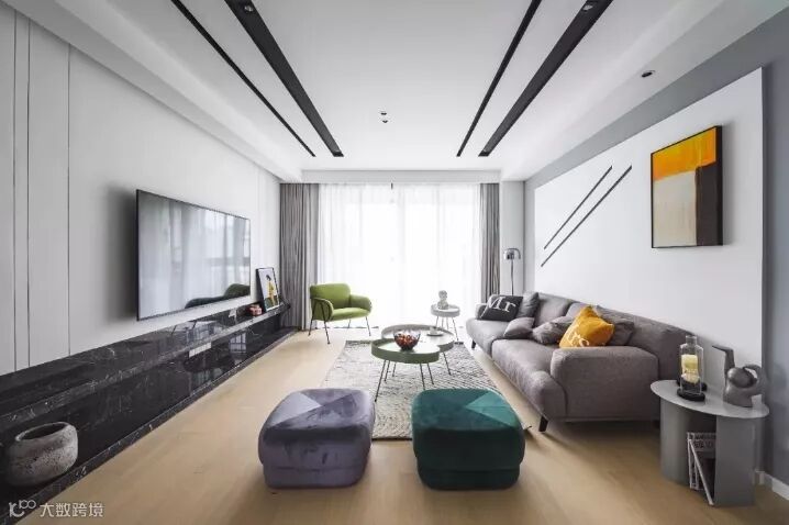 无主灯的空间设计,不仅光线更加舒适,而且能够营造简约大气的整体视觉效果,非常契合年轻人喜欢的现代简约风格。