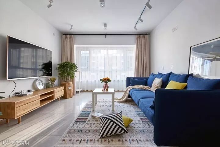 在客厅的天花上均衡分布筒灯,这样空间的照明就更加匀称舒适,让空间没有昏暗的角落,整体天花设计也显得更加宽敞大气。