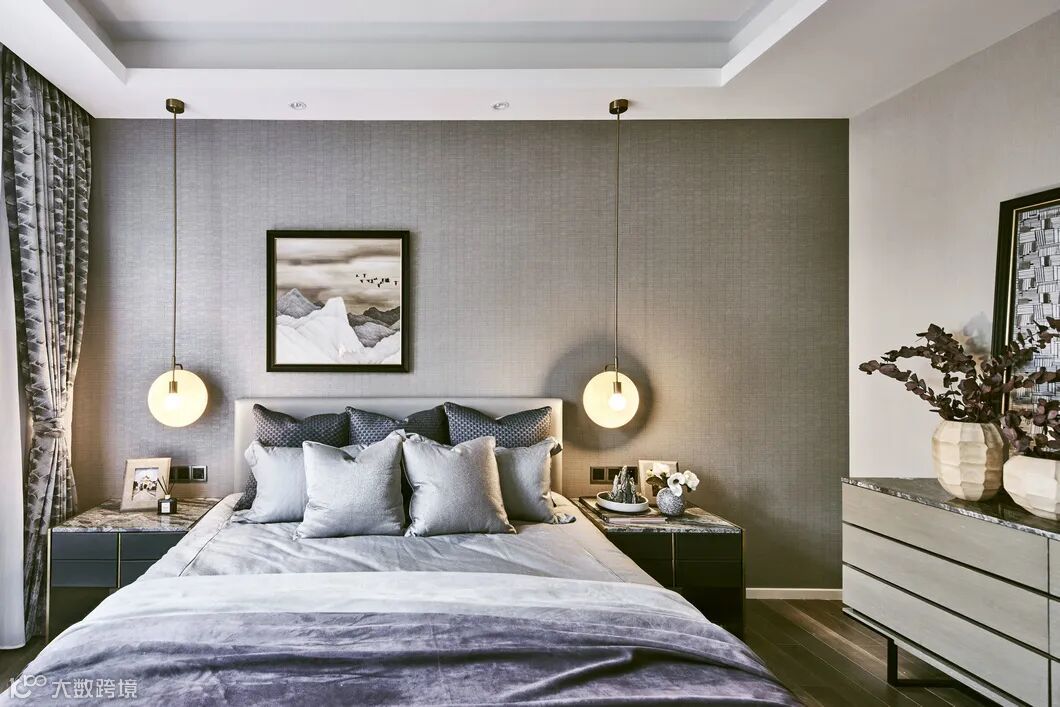 沉稳的深灰色床品别具一格安放柔软