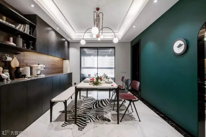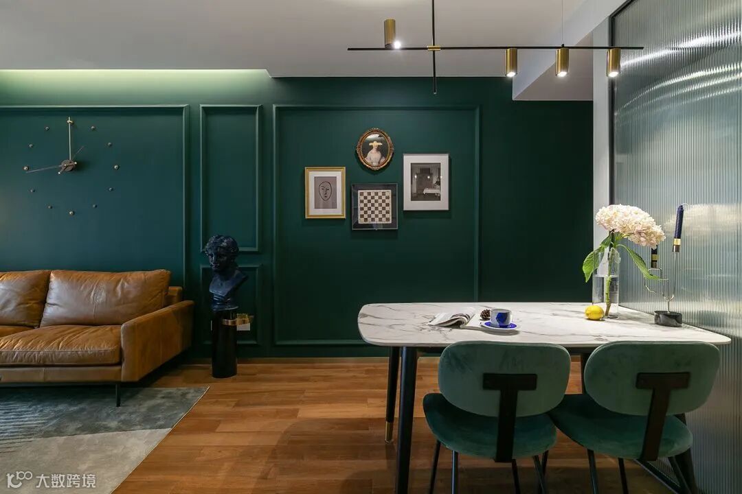 例如墨绿色,运用在家装空间,精致典雅,复古从容,浓郁的色调赋予整个空间生机与质感。
