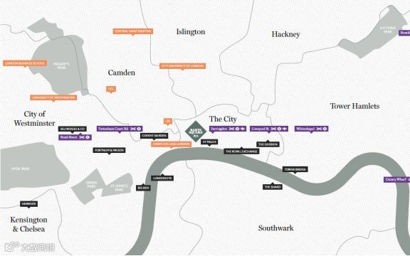 极其中心的地理位置:位于古老的伦敦老金融城City of London区域,位置中心、地段极为优越;