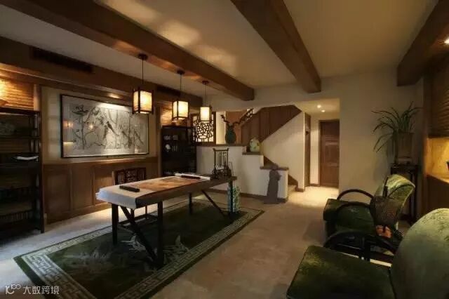 除此之外,中式田园风格空间格局讲究层次,多用隔窗、屏风来分割;家具陈设讲究对称,重视文化意蕴。