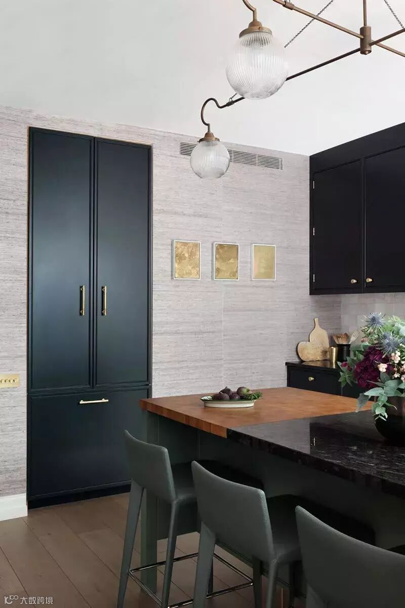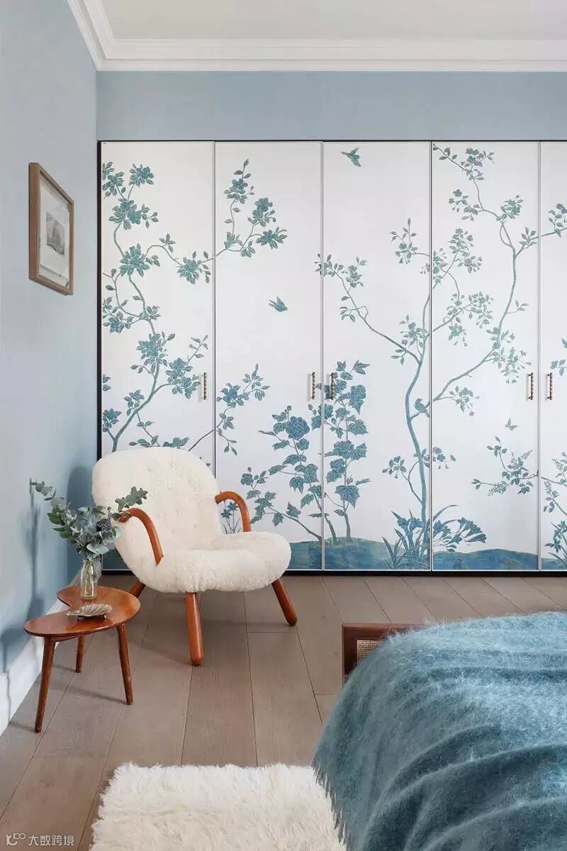 色彩上多以淡雅的板岩色和古董白为主,加上随意涂鸦的花卉图案点缀,装饰线条干净简洁。