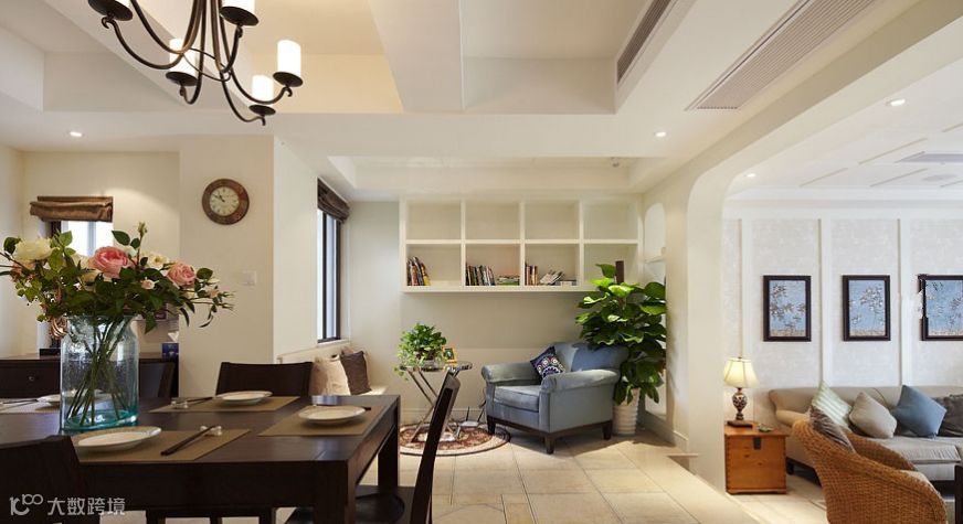 与英式风格相比,摒弃了过多的繁琐与奢华元素,整体装饰简洁明亮。