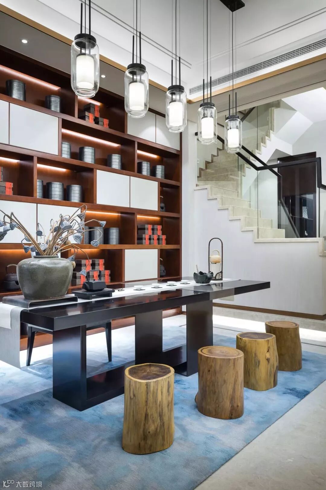 在社交型设计中,主角不是书而是人。在房间的中间摆放着的是小小休闲圆桌和舒服的懒人圆凳,铺上大面积的柔软地毯,欢迎着远道而来的友人。