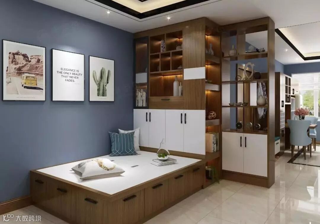 榻榻米的上方也可以设计成衣柜、书桌、储物的柜子,可以满足我们对多功能的要求,再也不用担心家里空间不够用了!而且榻榻米的使用会让我们的整个卧室提高一个档次,看起来更加赏心悦目。