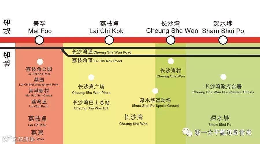 简单来说,现时的「美孚站」其实座落在荔枝角,「荔枝角站」则属于长沙湾的范围内,而「长沙湾站」昔日普遍被视为深水埗的北部,当时称为「苏屋站」。到1970年代末兴建荃湾线时,地铁公司决定将「苏屋站」改称「长沙湾站」,原本位于长沙湾范围内的车站,要让出「长沙湾站」一名,更改成「荔枝角站」;原本位于荔枝角范围内的车站则使用「荔湾站」,但后来亦因为美孚新村而改名为「美孚站」。