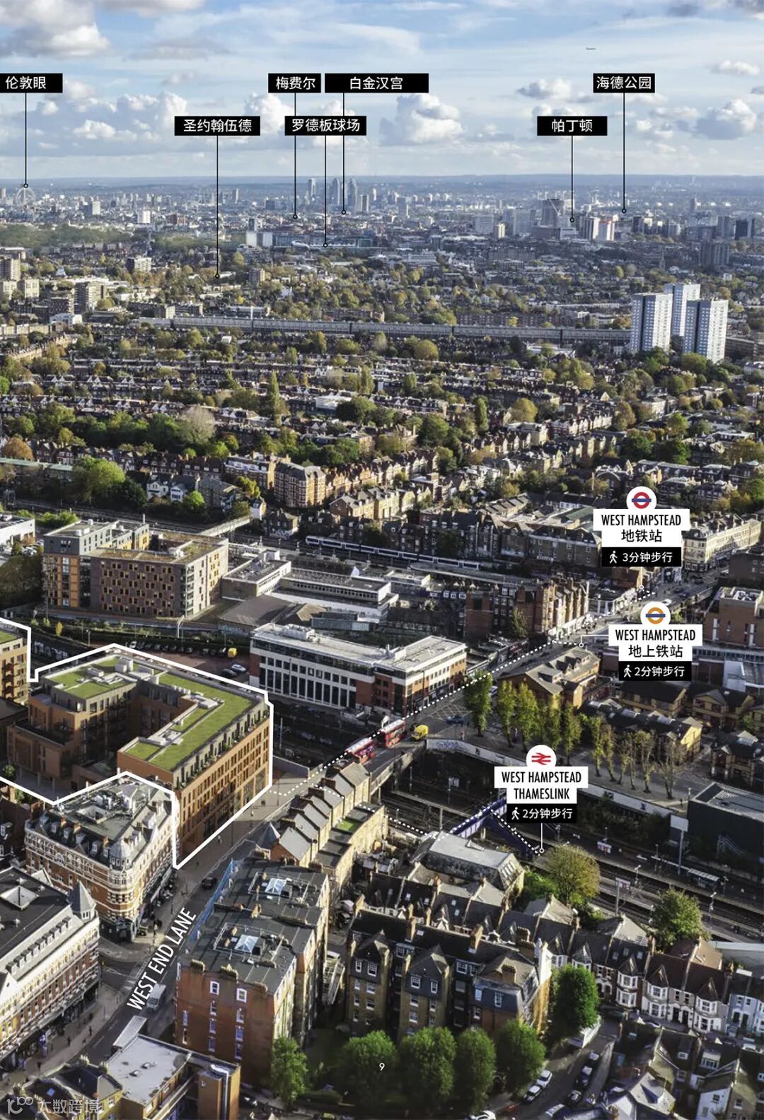 它不仅位于西汉普斯特德最繁华的West End Lane心脏地段,更与三大交通枢纽站点近在咫尺,步行2分钟即可来到火车站、地上铁车站,3分钟则可抵达地铁站,地铁银禧线Jubilee Line、地上铁Overground、火车泰晤士快线Thameslink尽在掌握中。