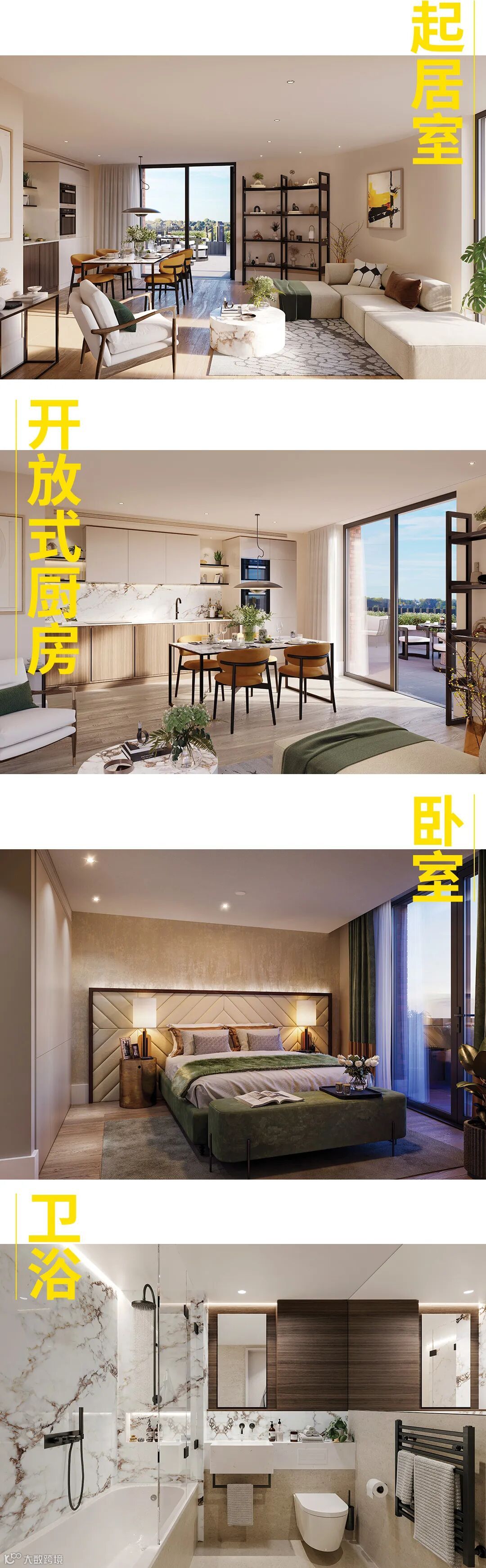 West Hampstead Central所有公寓均为一至二居精品户型,室内设计邀请到了屡获大奖的Johnson Naylor工作室操刀,从「永恒」这一核心质感出发,从起居室、卧室木地板到令人身心舒展的层高,从德国Miele厨房电器、西门子冰箱到储藏间以外遍布整个公寓的地暖……家,从未如此优雅。