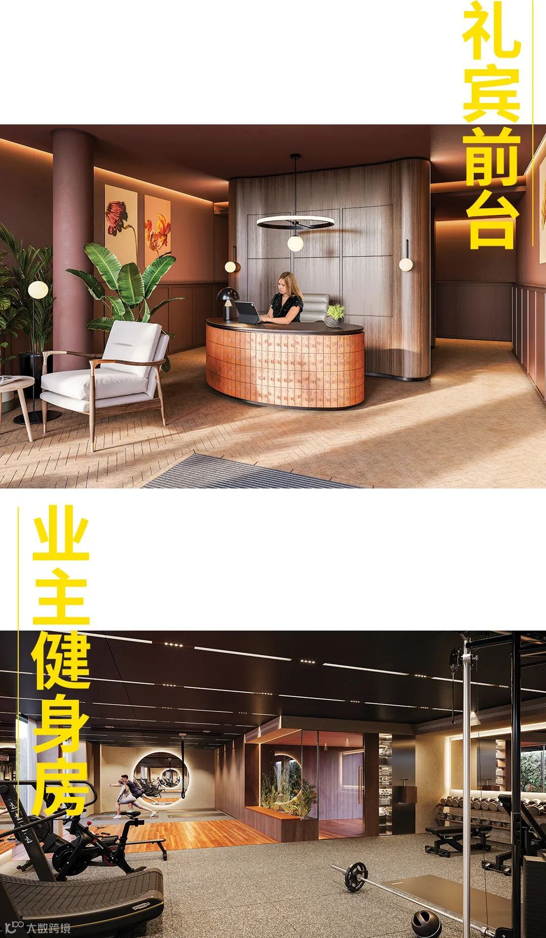 设施方面,项目配置了每天12小时工作的礼宾前台,提供问询及包裹代收等服务;以及配备顶级器材的业主健身房,以暗色木地板、柔光、镜面墙等元素打造独具未来感的运动环境。