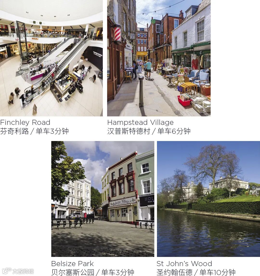 从汉普斯特德村Hampstead Village、贝尔塞斯公园Belsize Park的经典英伦村落式街道,到芬奇利路Finchley Road上的现代购物中心、精品店、咖啡馆、餐厅、电影院,再到继续向南豪宅聚集的圣约翰伍德St John's Wood,每每探索起来,总令人意犹未尽,不得不感叹——