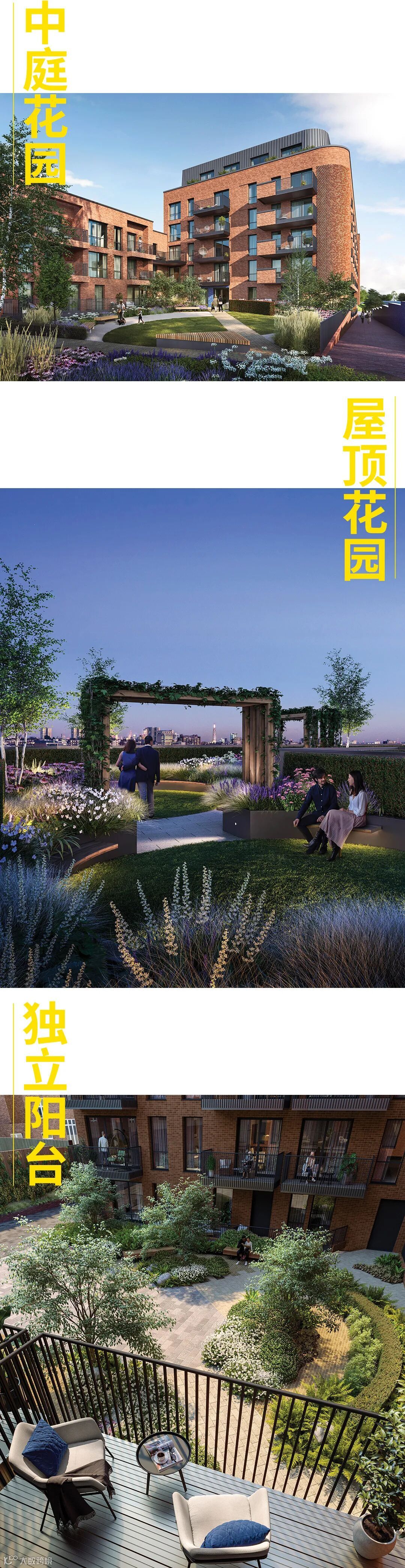 项目建筑环绕之下,设有仅限业主可用的中庭花园、屋顶花园,加上每间公寓都带有的露台或阳台,将汉普斯特德居民引以为豪的户外绿地「请」到家中来,更添一份来自大自然的安然舒畅。