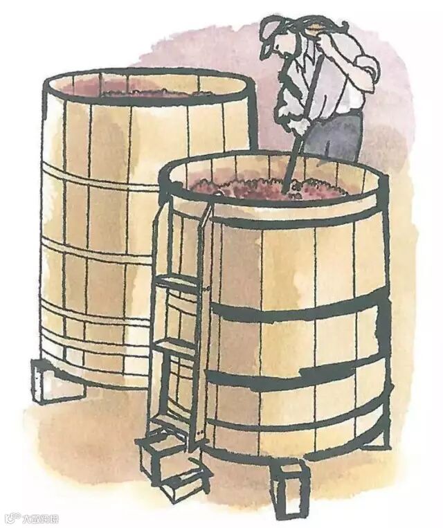 踩皮:将浮在酒槽表面的葡萄皮压沉进葡萄酒中,目的在保持葡萄皮的湿润,也让葡萄酒与空气接触,并促进葡萄皮萃取出更多颜色和香气。这个工作必须每天进行,相当耗力气,现在已经设计出多种取代人力的机器。