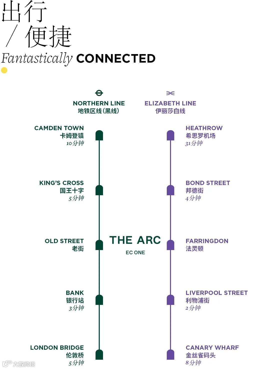 更棒的是,2022年,伊丽莎白线也迎来正式通车。这意味着The Arc的住户从交房开始,就已可以享受提速通勤邦德街、金丝雀码头、希思罗机场等地的升级体验!