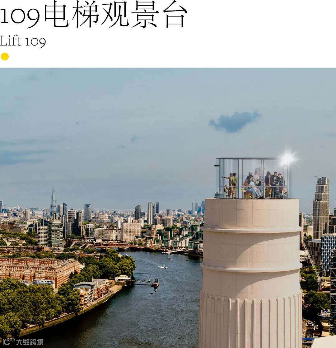 发电站老建筑的设计出自成功打造了伦敦红色电话亭的吉尔斯·吉尔伯特·斯科特爵士,最突出的设计元素之一就是白色的烟囱。其中一个烟囱将改造成为带有升降电梯的观景台,名为「109号电梯Lift 109」,取其109米高度的意义,预计今年底开放。