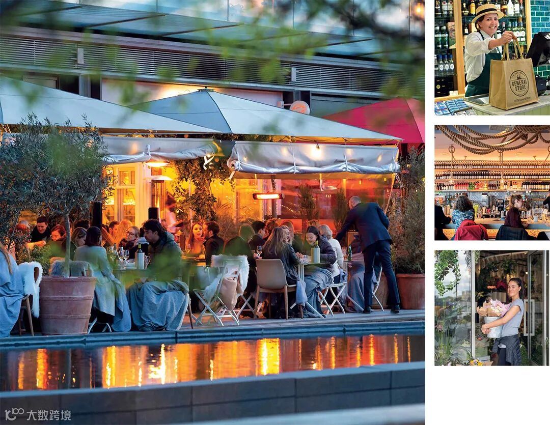 一期工程Circus West Village除了带来首波已售罄住宅,还为项目带来了450米水岸生活区域,包括23个商铺和大量户外空间,从独立零售商、花店到户外餐饮,应有尽有▼