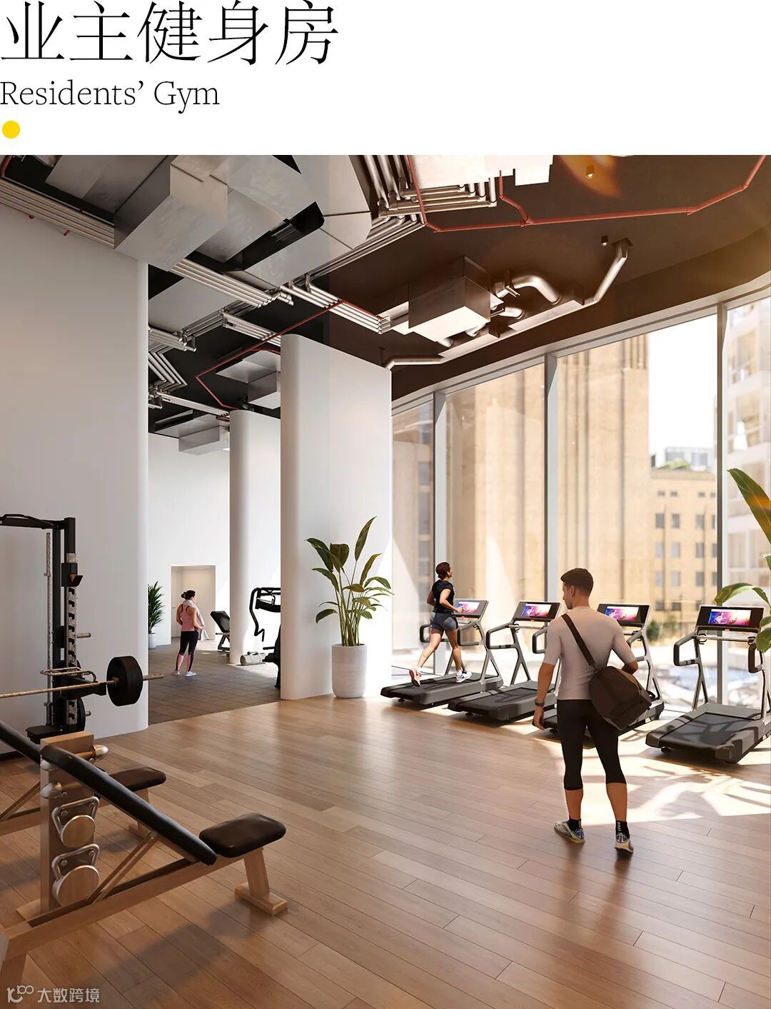 其中,健身房高层可以俯瞰Electric Boulevard商业街景观。通常被用于高价住宅的楼内位置成为所有住户均可使用的共享空间,可见开发商用心保证所有业主的最佳生活体验!