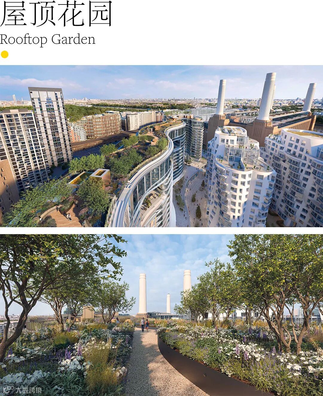 但要说最吸引人眼球的,还是它有效利用建筑空间,打造垂直三维立体城市绿洲的「神操作」:其中就包括和本次开盘的新期KOA同一栋建筑内的220米屋顶花园,也是伦敦规模最大的屋顶花园之一!