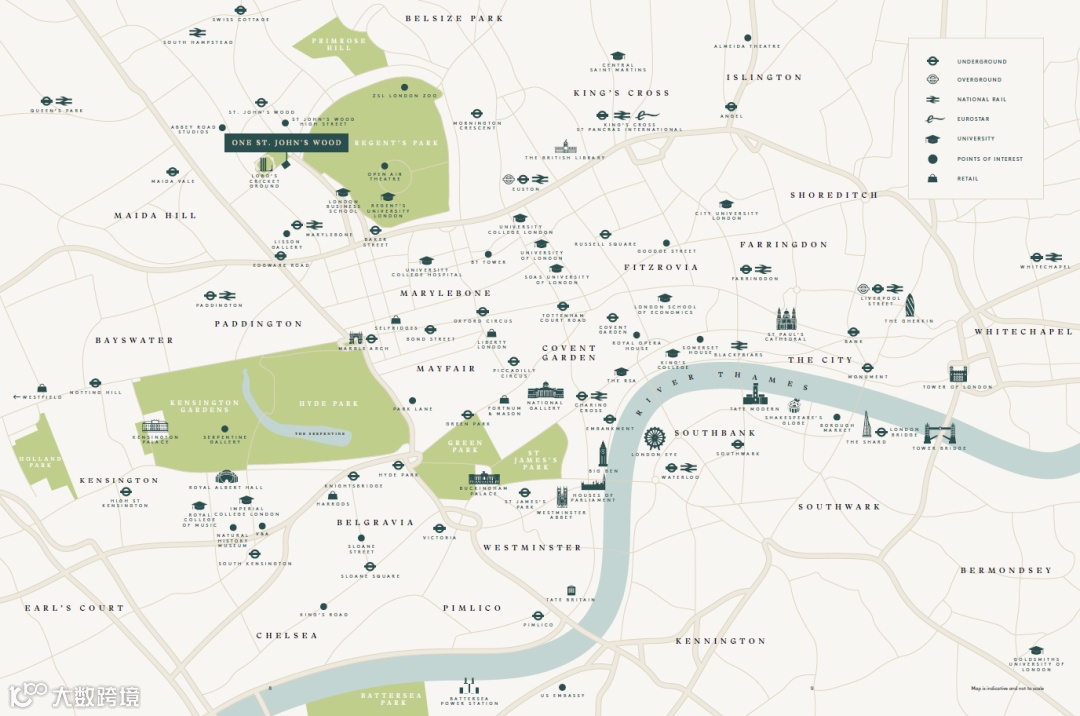 One St. John’s Wood所在位置是伦敦著名富人区,也是老牌资本、国际富豪、政商精英及名人聚集之地,包括前披头四成员Sir Paul McCartney、名模Kate Moss及巨星Rihanna都择居于此。而之所以青睐St. John’s Wood,有充分的理由:这里处于伦敦市中心黄金地段,却是低密度住宅为特色的社区,还拥有广阔的公共区域,区内还有著名的摄政公园,这里谦逊、低调却有高贵的气质,非常符合英伦贵族的性格。