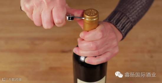 1. 像往常一样,用开瓶器慢慢地划开酒瓶盖下面的金属薄片,但不要完全切断。