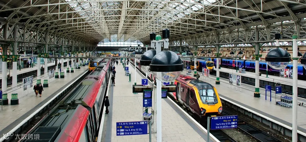 市内有一个最大的火车站 - 皮卡迪利车站 (Piccadilly Station),每年载客量超过2千万人次,是英国最繁忙的车站之一,如要从曼彻斯特前往其他城市如伦敦、伯明翰或格拉斯哥便必须要从这个车站出发。另外,英国正在兴建的2号高速铁路(HS2),将曼彻斯特连接佰明翰至伦敦,将可大大减少前往其他大城市的交通时间。而曼彻斯特另一个大型基建项目是由北京建工国际有份参与兴建的Airport City, 总投资额达8亿英镑,是伦敦机场以外唯一一个提供直航航班到香港的机场。该项目会同时兴建一个商业及物流中心,提供5万平方呎(约4645平方米)的楼面面积作写字楼、酒店、工业及物流用途。