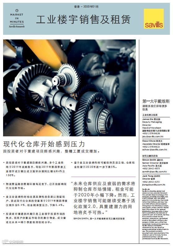 “尽管存在贸易紧张局势,投资者对工业行业重建项目仍感兴趣,任何价格下跌都会迅速刺激成交活动。自2014年以来,平均交易规模显著增大,反映了政府活化工厦计划的影响。”