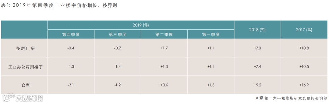 物流营运商的营商环境恶化,已开始影响现代化仓库市场。因此在2019年第四季度,现代化仓库的空置率仅升至0.9%,租金则下降5.4%。