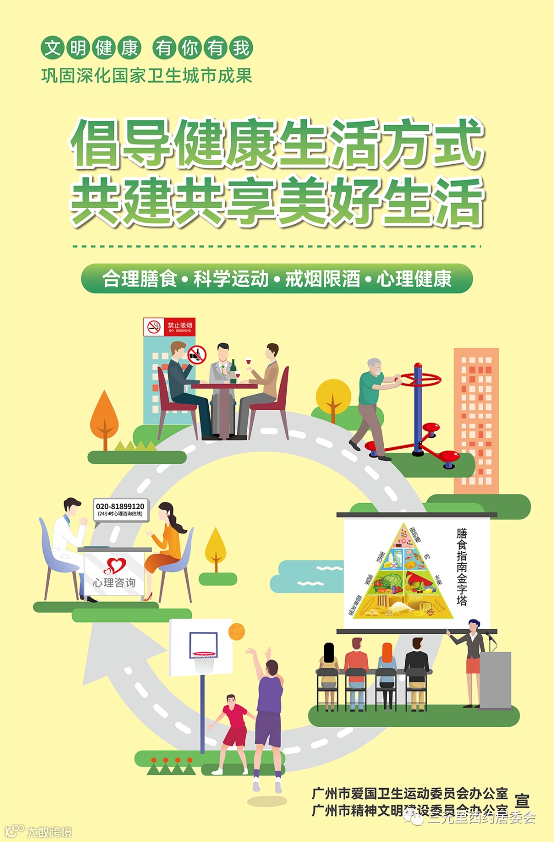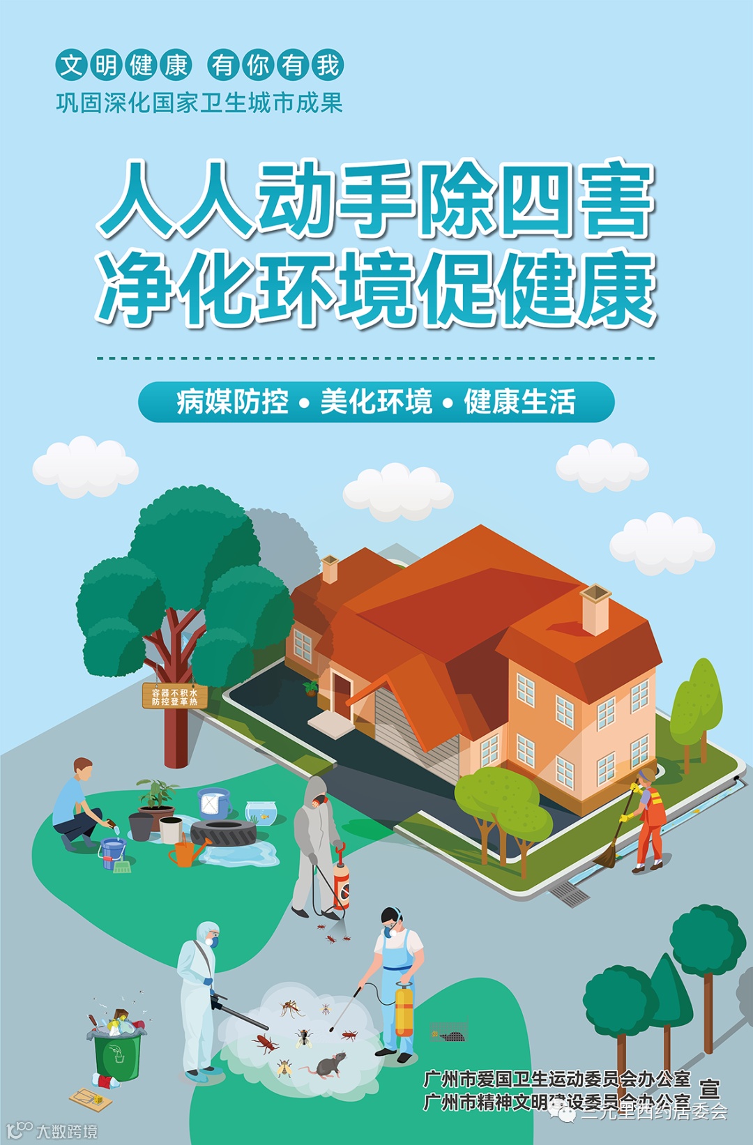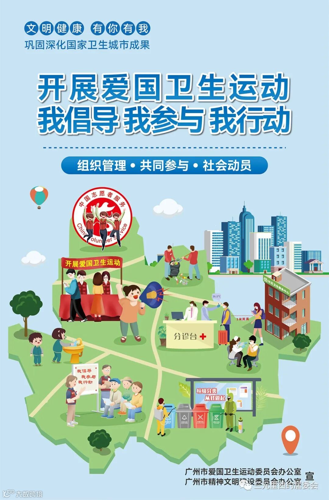 “国家卫生城市”是衡量城市整体卫生管理水平的最高荣誉,是城市综合实力、城市品位、文明程度和健康水平的集中体现。广州创建国家卫生城市以来,城市面貌、人居环境得到全面提升。今年,我市将迎来新一轮国家卫生城市复审。广大市民朋友作为城市文明的创建者、参与者,我们向您真诚发出倡议,请大家积极行动起来,共同参与“巩卫”,共建美好白云。