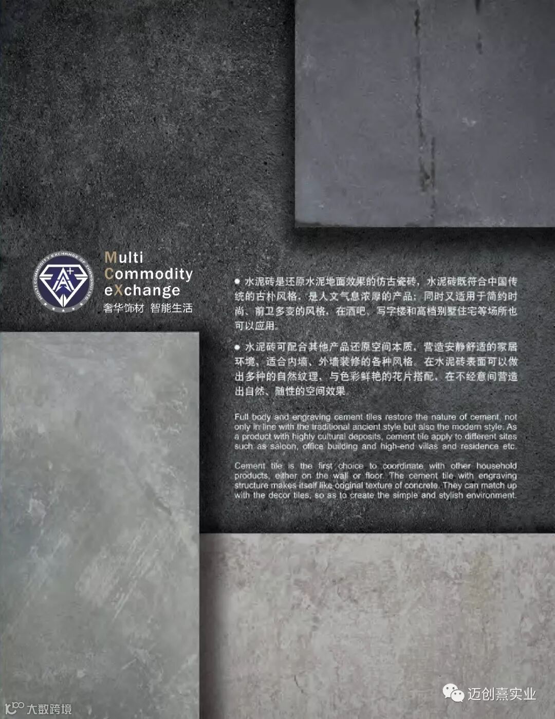水泥砖是还原水泥地面的仿古瓷砖,水泥砖既符合中国传统的古朴风格,也是人文气息浓厚的产品,同时又适用于简约时尚,前卫多变的风格,在酒吧,写字楼和高端别墅住宅等场所得以大量的运用。