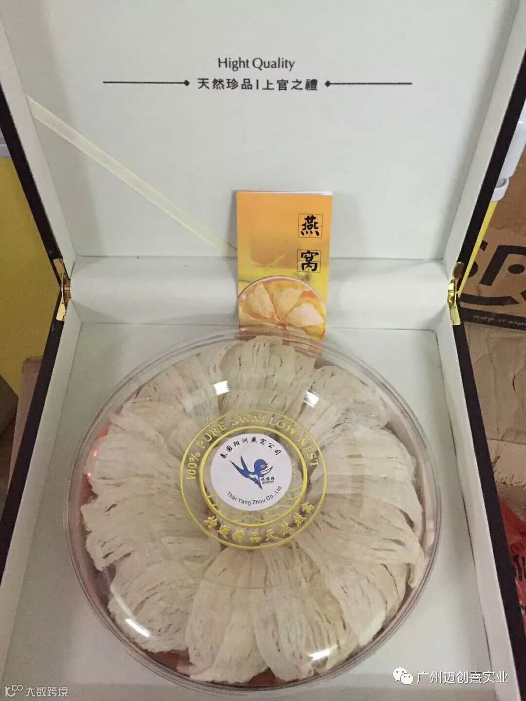 我们在泰国注册公司叫阳洲燕窝,在国内就以迈创熹实业公司作为统筹销售。