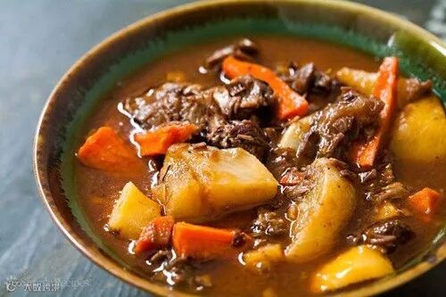 5. 羊排酥软后加入土豆、洋葱和胡萝卜;