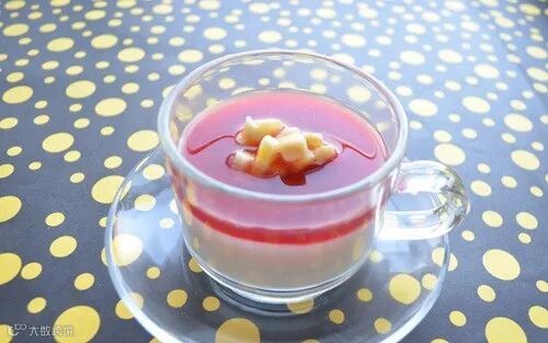 5. 从冰箱中取出酸奶,将红葡萄酒倒入酸奶杯中,拌匀即可。