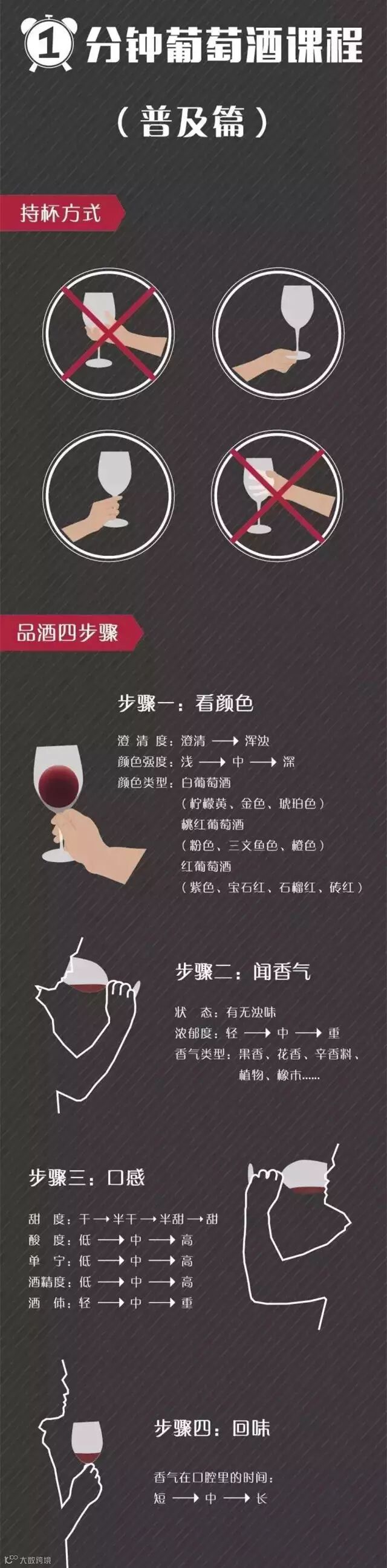 喝葡萄酒可不只是简单的倒在杯子里,然后一饮而尽,它不仅需要讲究喝酒的步骤,还讲究喝酒的姿势,并且这些讲究可不只是“穷讲究”,因为这些喝的方法会极大地影响到葡萄酒的口感,想要喝到最美妙的口感,那么你就需要掌握这些喝酒的姿势。