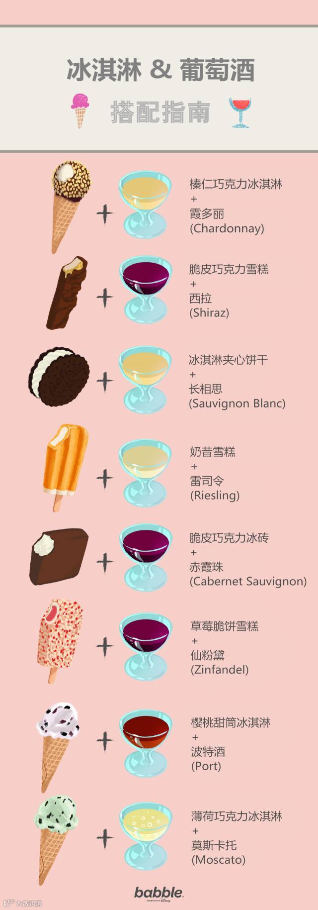 每到夏天,各类冰淇淋就成了人们解暑消乏的神器。而对于朋友们来说,美食美酒的搭配宝典之中自然不能漏了冰淇淋与葡萄酒的搭配。那么,甜筒、雪糕、冰砖等各类美味的冰淇淋都应该如何与美酒搭配?看了下图你就知道了~